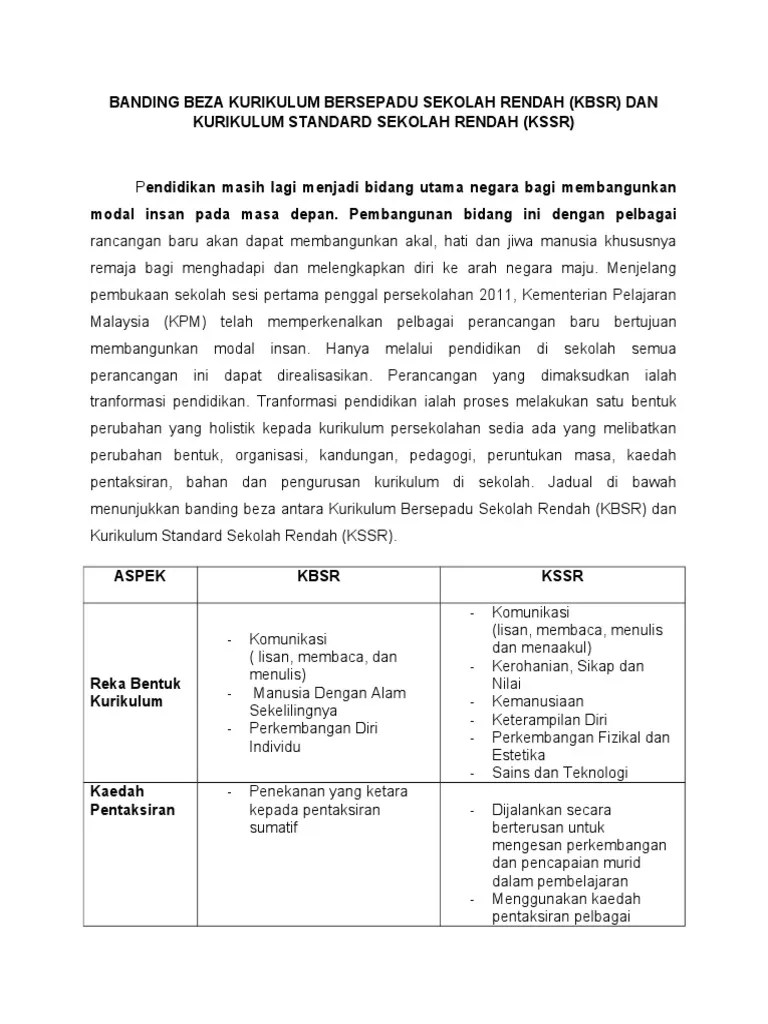 Beza Kbsr Dan Kssr - Kbsr focused only on individuals whereas kssr focused not only on individuals but also their surroundings.. Antara persamaan kbsr dan kssr ialah kssr digubal berlandaskan falsafah pendidikan kebangsaan serta mengekalkan prinsip kbsr, maka empat prinsip di dalam kbsr iaitu pendekatan bersepadu, perkembangan individu secara menyeluruh, peluang dan kualiti pendidikan yang sama. Perbezaan pendidikan islam kbsr dan kssr. Selaras dengan perkembangan sains dan teknologi, menggalakkan budaya kreatif dan inovatif, kurikulum pendidikan islam terus dimantapkan melalui kssr. Sgo disini ingin berkongsi rpt kbsr tahun 6 untuk semua subjek. 17,865 total views, 1 views today.