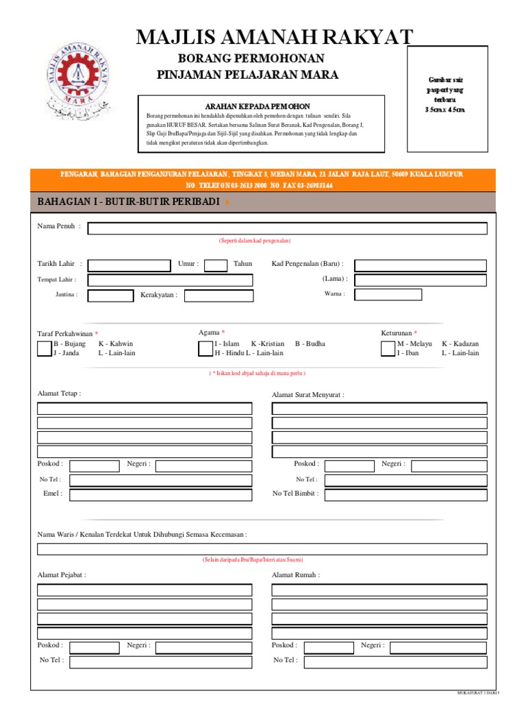Biasiswa Mara 2020 Ijazah Sarjana Muda Degree (Scholarship) from mypt3.com Untuk pengetahuan korang, mara dah takde nak isi borang, hantar dokumen secara manual macam dulu. Mara ialah agensi kerajaan yang diwujudkan bertujuan menggalakkan, memudahkan, memajukan dan secara khusus, mara berfungsi membantu aktiviti ekonomi, termasuk menyediakan kemudahan pinjaman perniagaan untuk usahawan. Apakah syarat am untuk permohonan pinjaman pendidikan mara. Bolehkah membuat pinjaman mara untuk pengajian di peringkat sijil, diploma dan ijazah sarjana muda di luar negara? Pinjaman luar negara hanya diberikan kepada pelajar lepasan ijazah pertama untuk melanjutkan pengajian ke peringkat sarjana (masters), profesional dan doktor. Elaun ni sama untuk semua pelajar yang berbeza hanyalah yuran pengajian. Untuk mengajukan pinjaman online sekali bayar maupun pinjaman cicilan terbaik dan terpercaya dengan mekanisme angsuran bulanan, kamu harus penuhi kriteria di bawah ini. Boleh hubungi kami untuk maklumat lanjut.